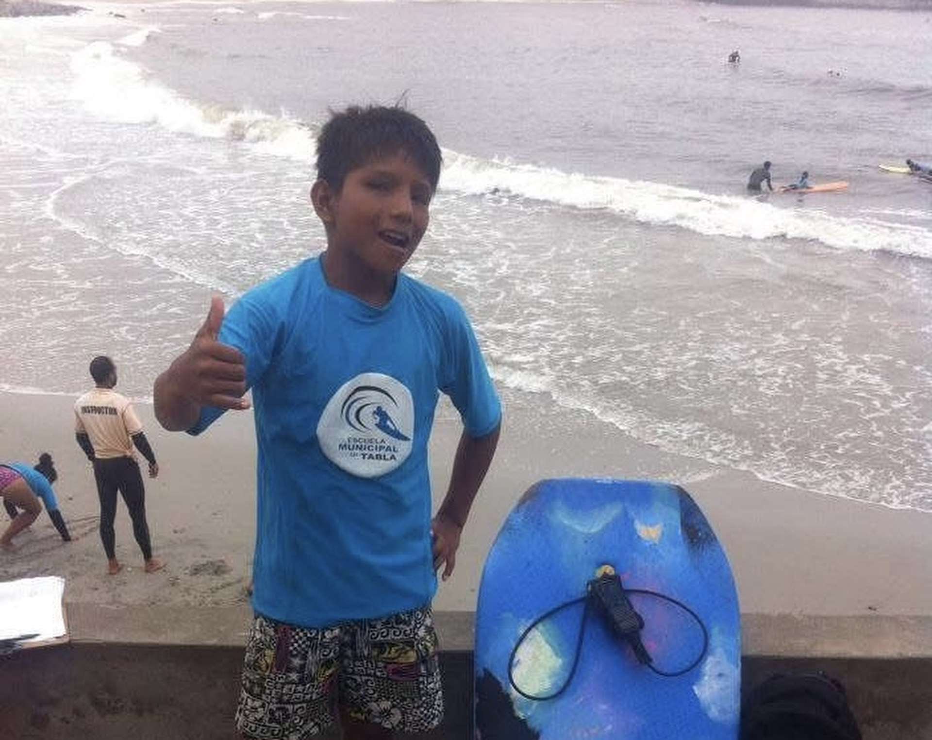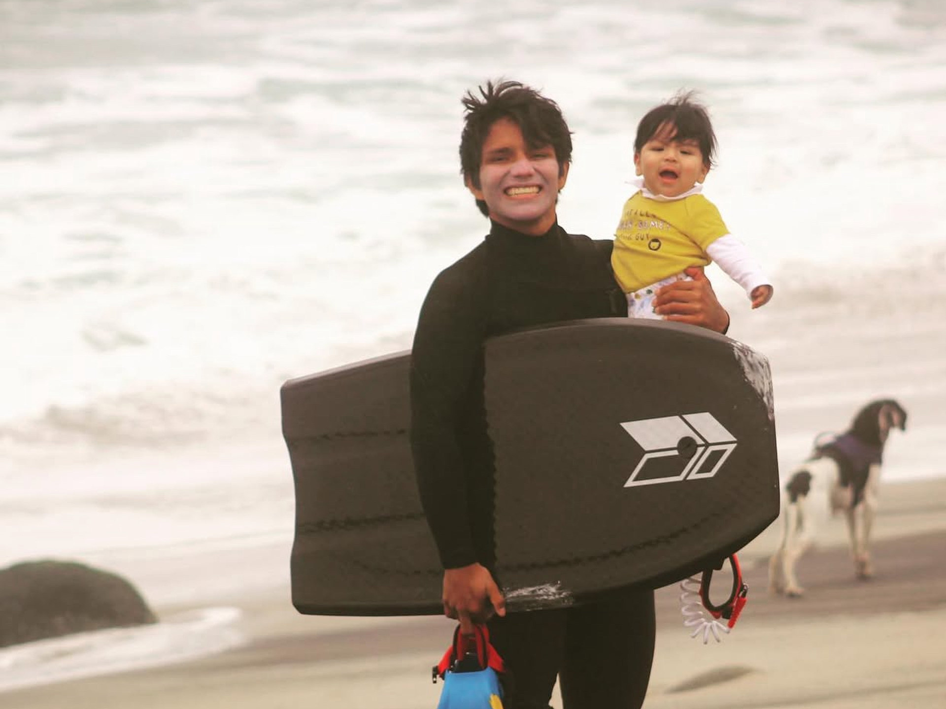 Since I was very young, I had to help out at home when we lived in Iquito, then we moved to Lima. I started working by taking care of and cleaning cars. That’s how I met many people—some good, some not so good—but thanks to them, I went to the beach for the first time. It was definitely a surprise for me. In the jungle, there are only rivers, so I’d only known about rivers until I discovered the beach. My friends and I would go all the time. My brother Antony found an old bodyboard where we were renting a place to live with my family. Later, with my friends who also took care of cars, I saw that the bodyboard I had at home was used to slide over the waves. I thought, “Hey, I have one of those at home,” and that’s how I started bodyboarding. Thanks to my brother Antony, who always took me to the beach. To learn tricks, I’d save up the little money I earned from taking care of cars and go to internet cafes to watch videos of my idols. That’s how I started training and improving in bodyboarding, at just 12 years old.
