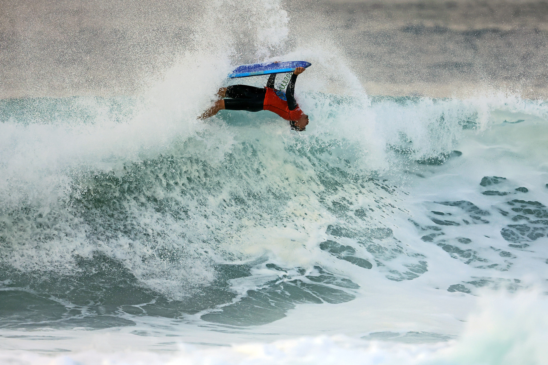 Tahitian surfer Tehei Tahirivairau almost nailed a perfect heat, surfing super electrifyingly and smashing the lip with everything he’s got. He managed to beat the current number 1 in the IBC rankings, Brazilian Uri Valadao, and both are still in the competition.