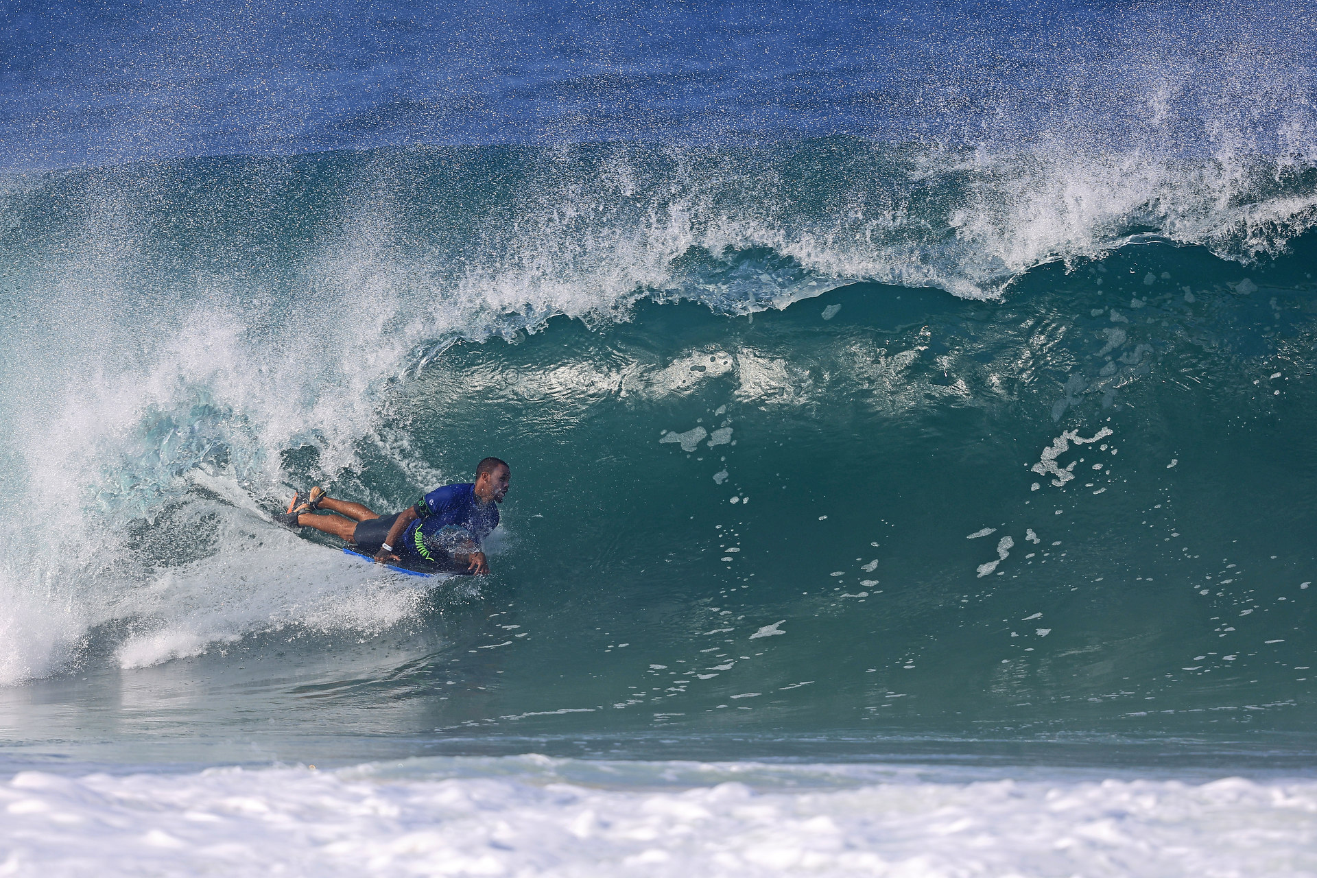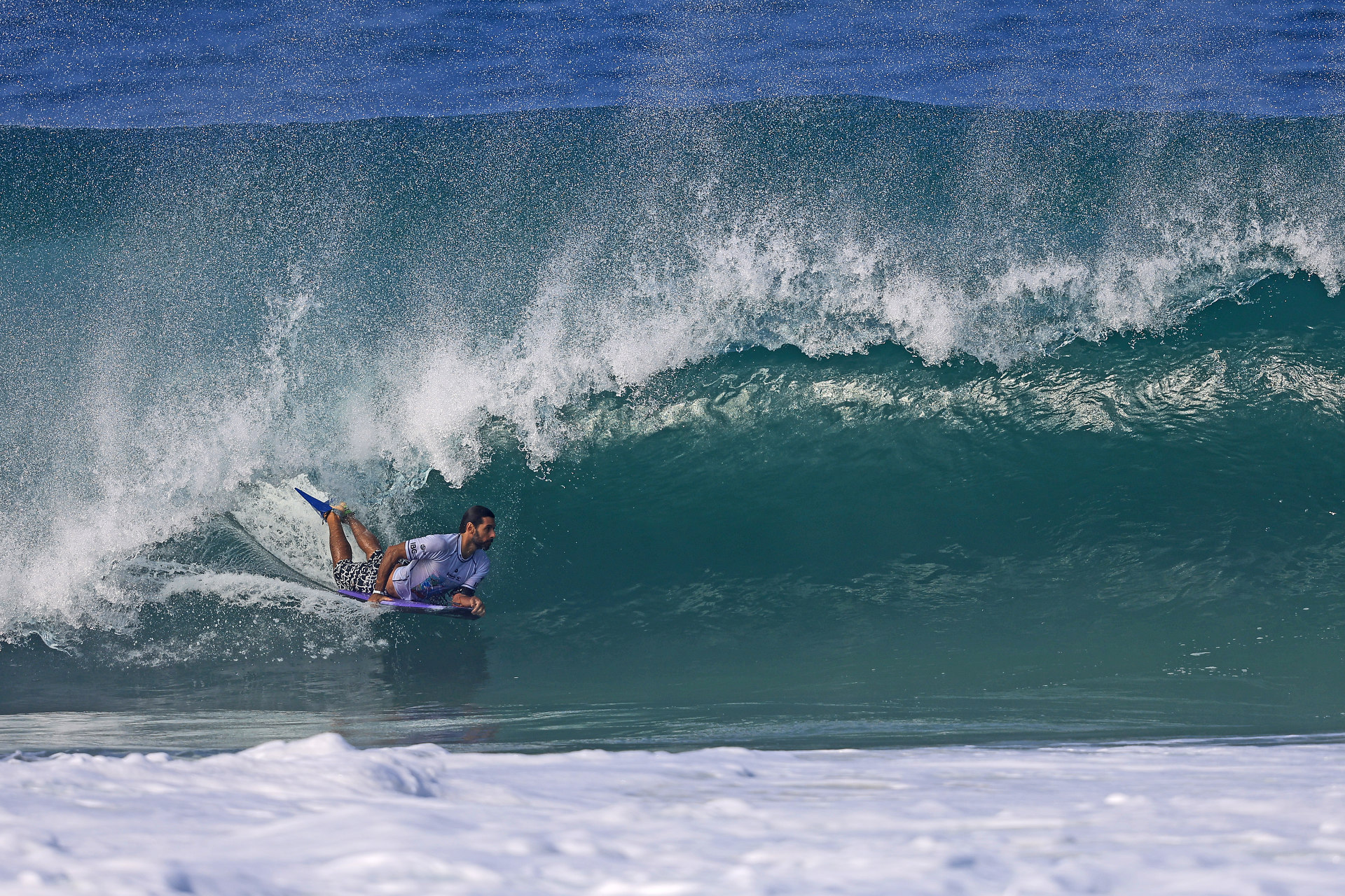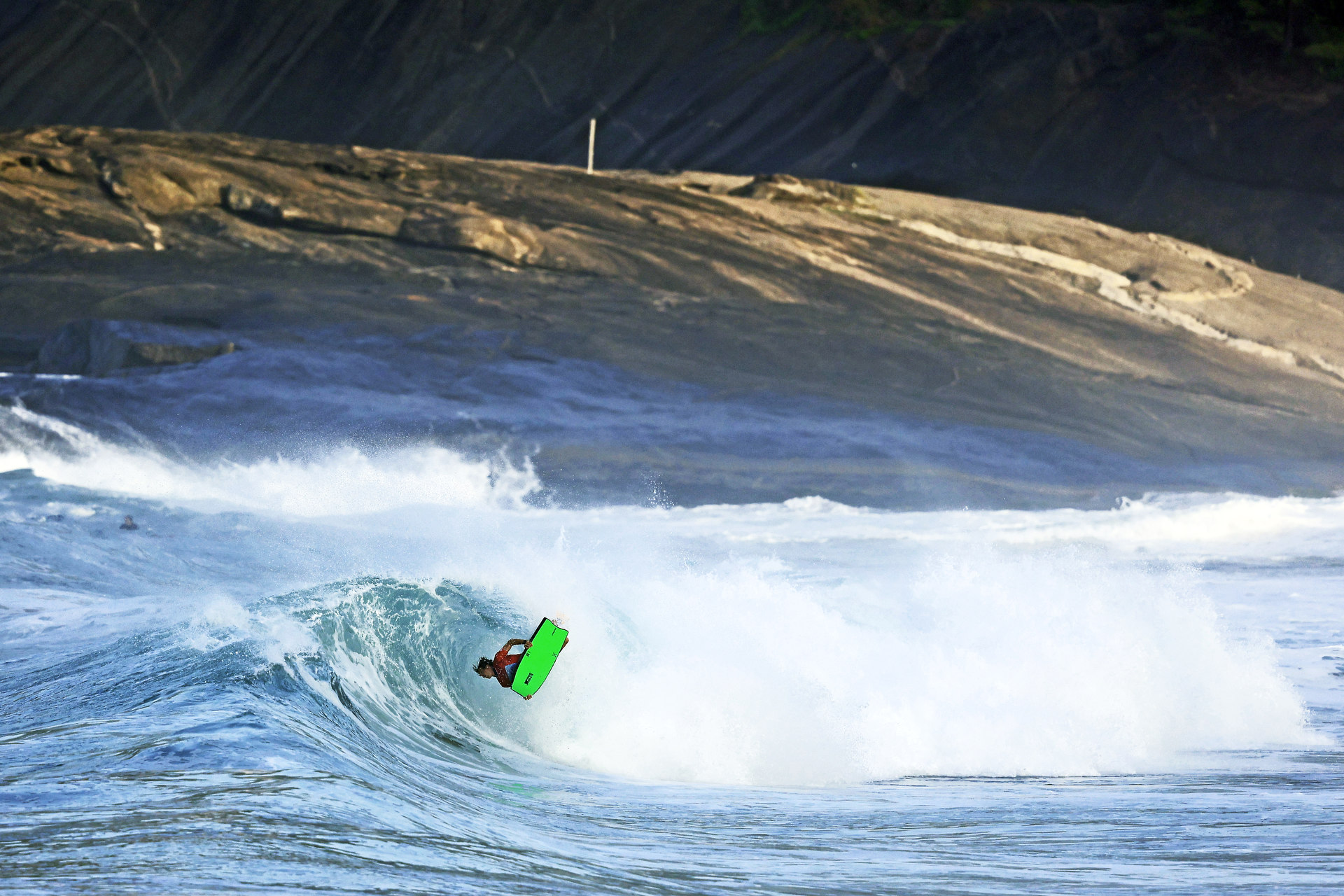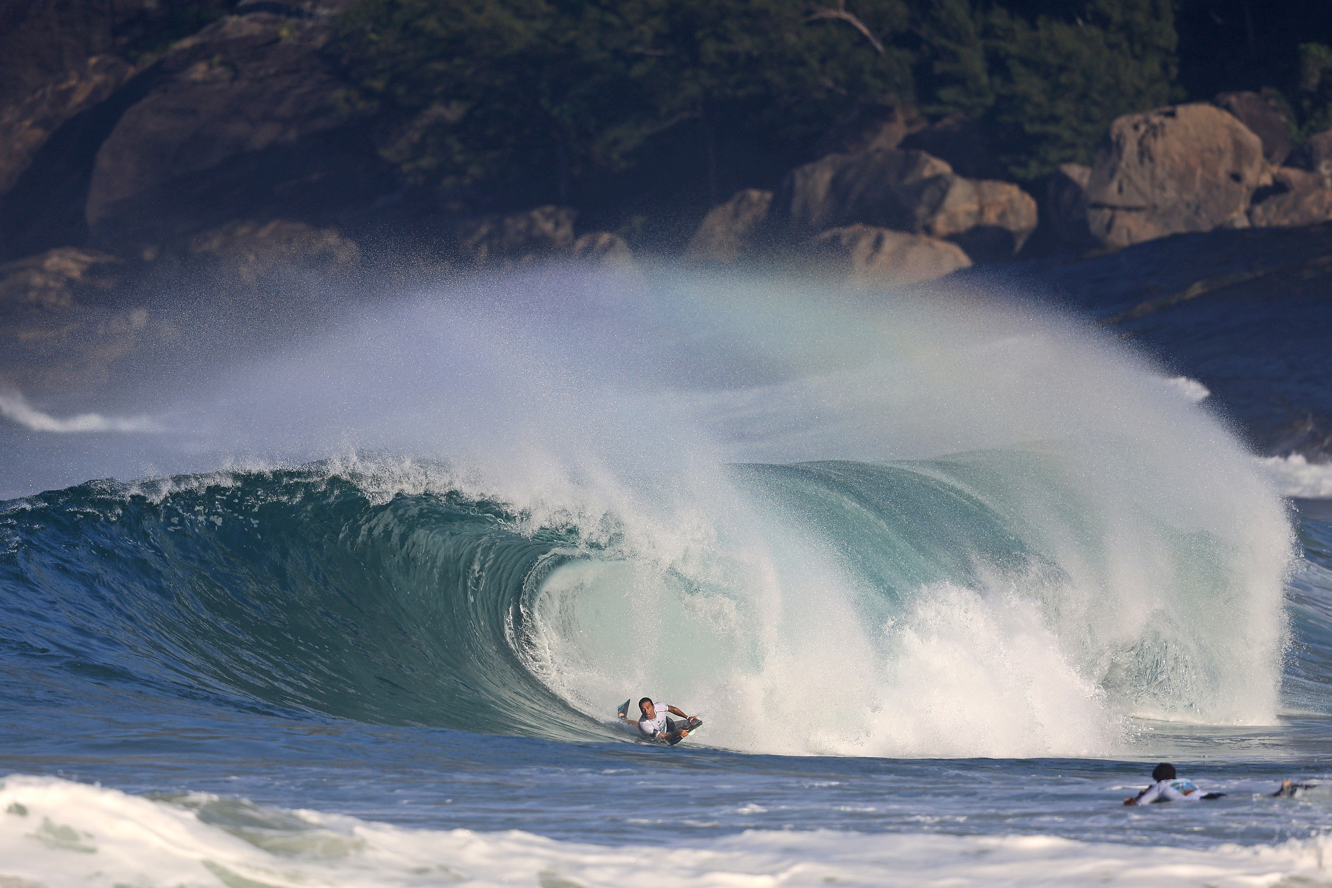 At 6:45 a.m. local time, the bodyboarding action kicked off again on the beautiful Itacoatiara beach.