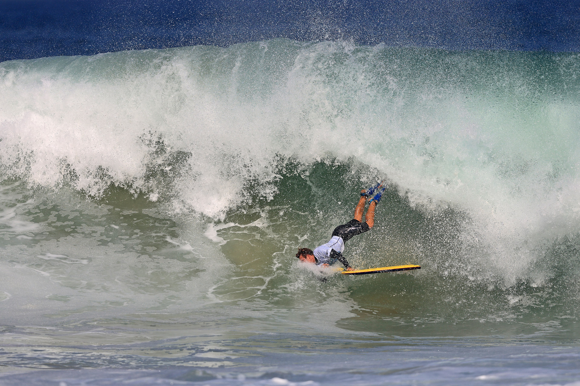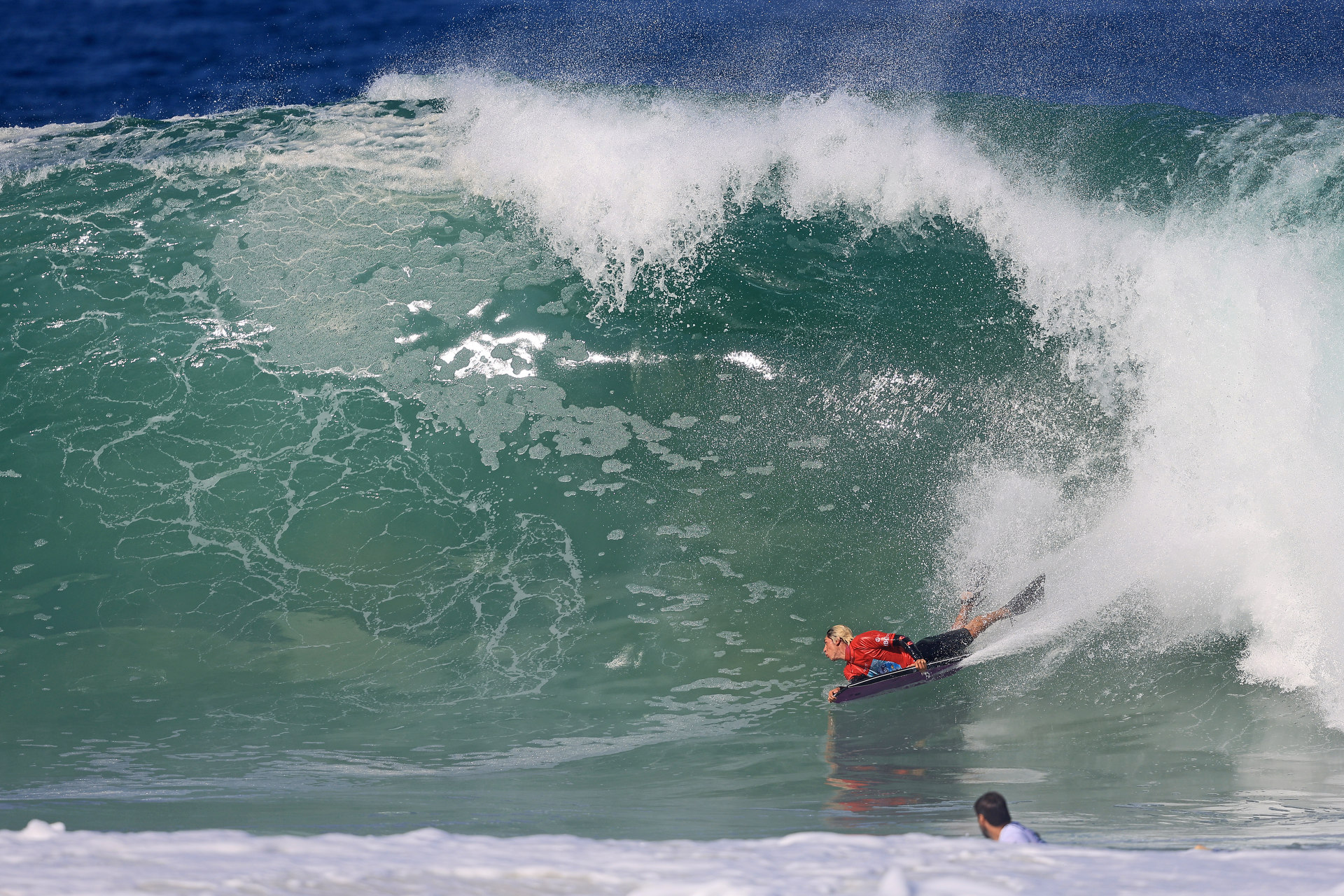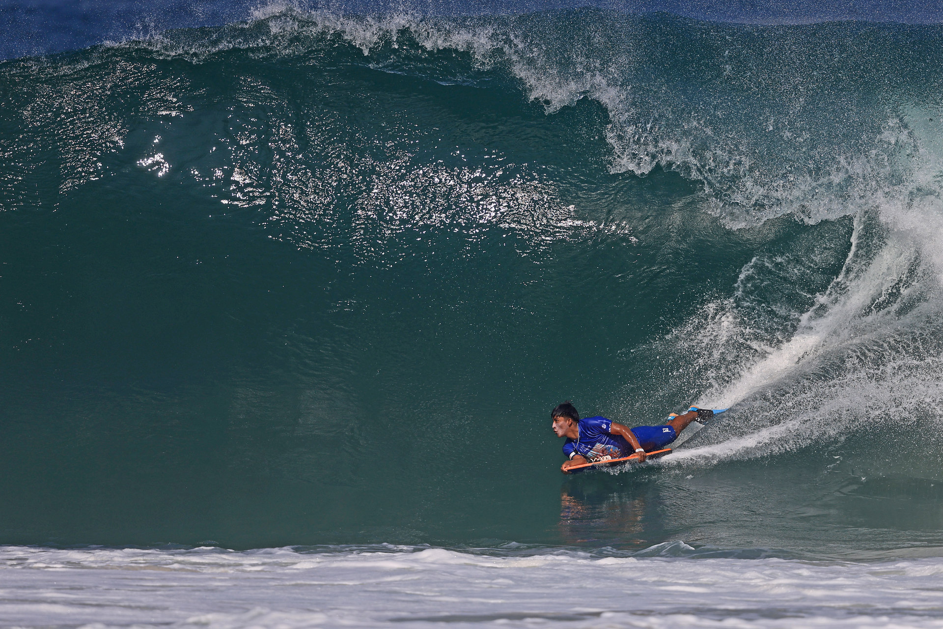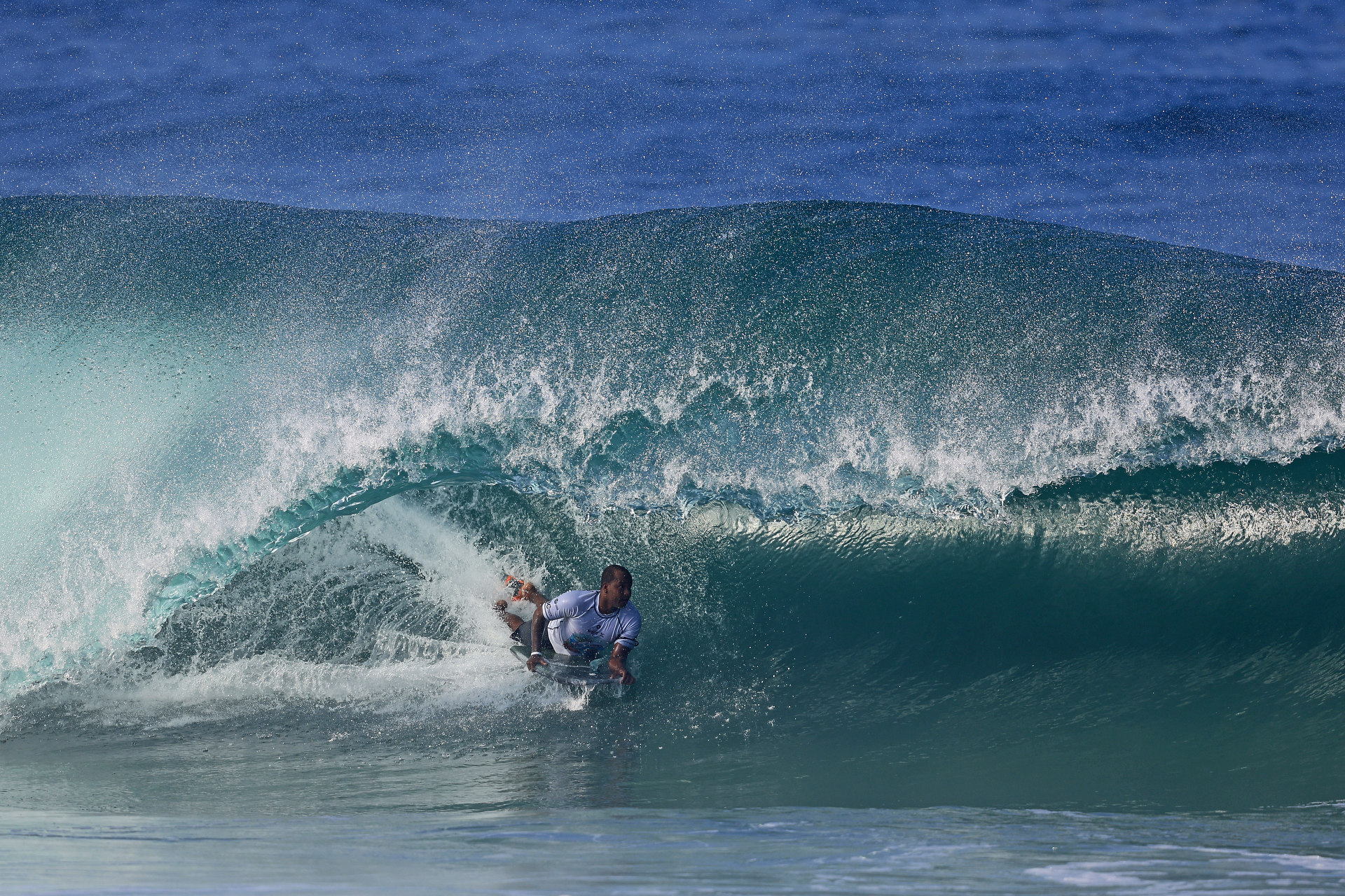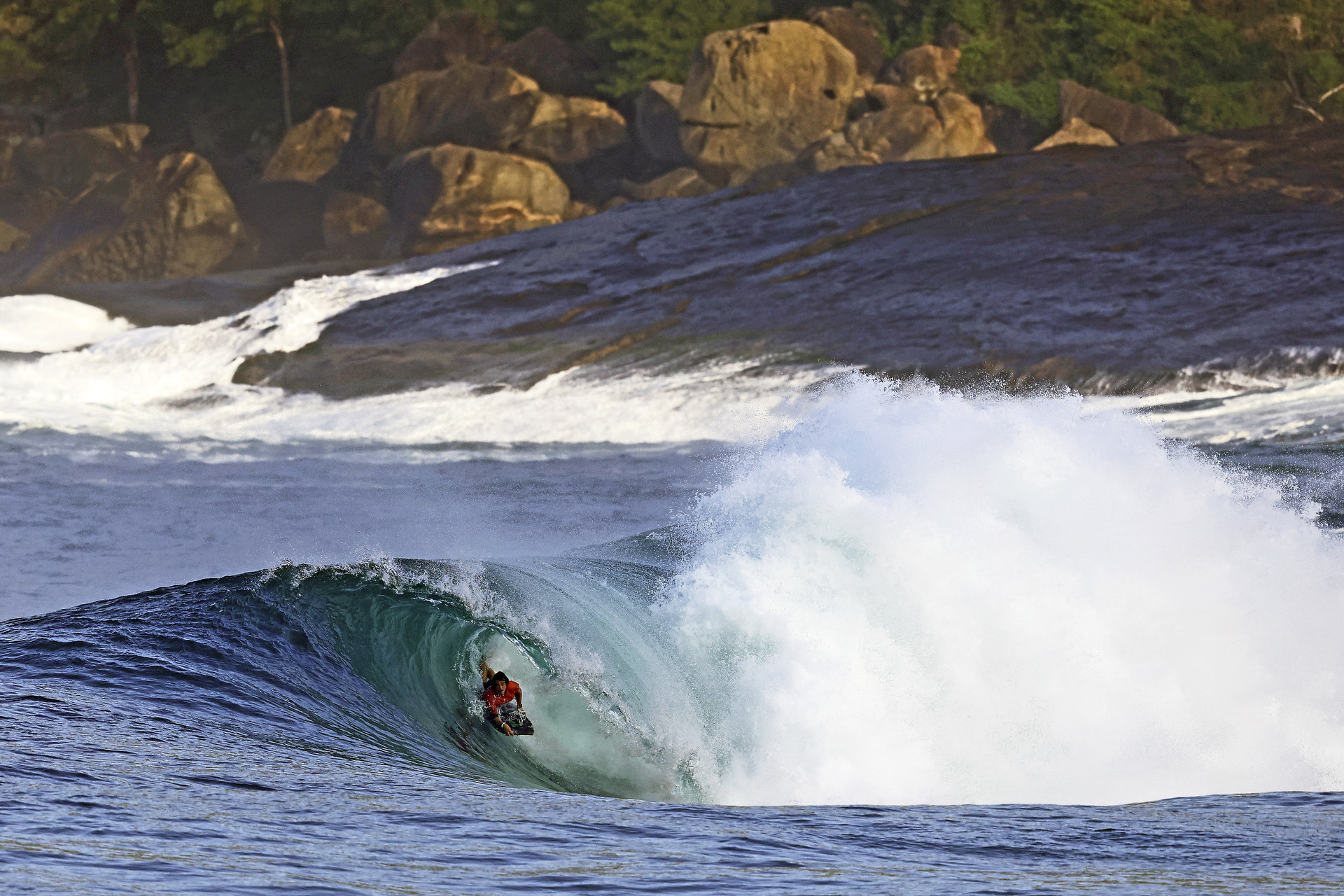 At 6:45 a.m. local time, the bodyboarding action kicked off again on the beautiful Itacoatiara beach.