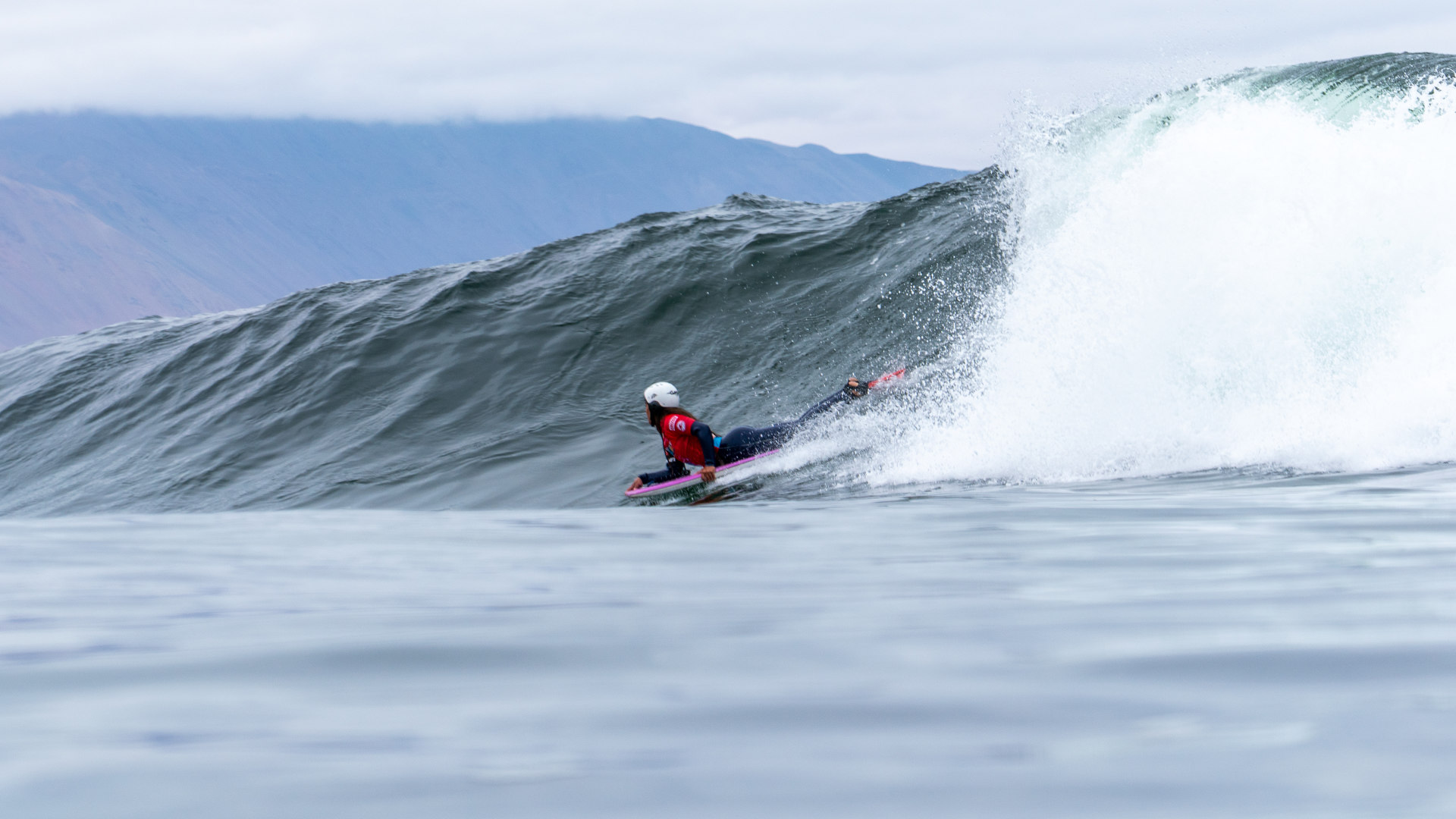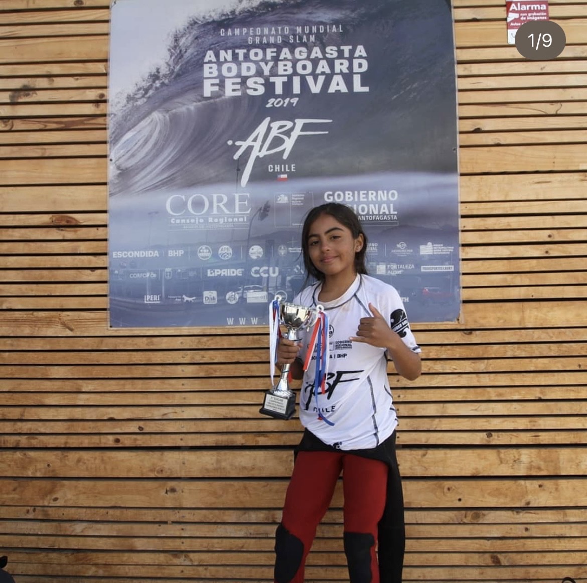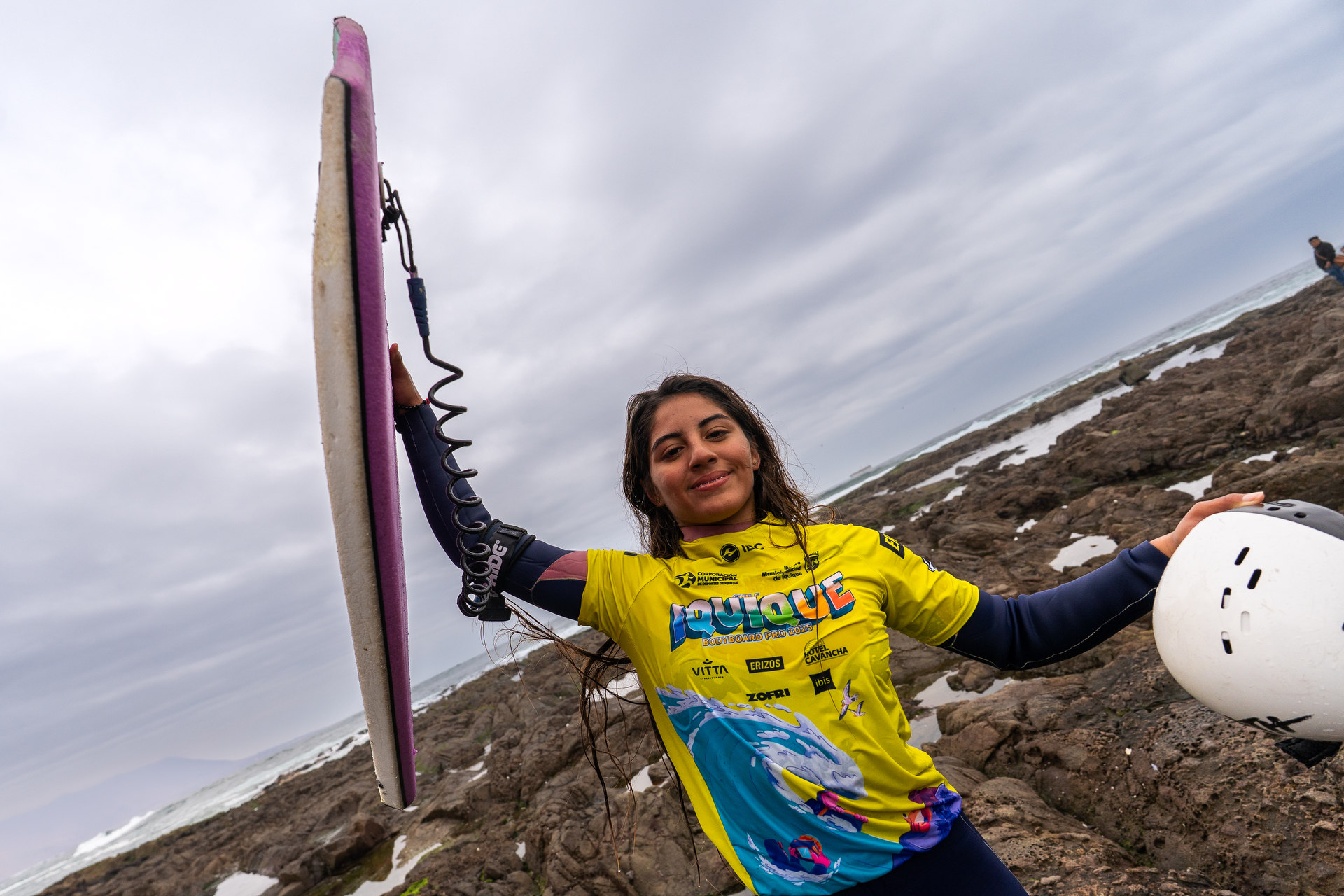 Born in Antofagasta, Chile, she’s been practicing bodyboarding for 7 years. Her favorite trick is the roll, and her favorite wave in Chile is La Punta 2 in Iquique, where she recently secured second place in the women’s open category — her first podium finish.