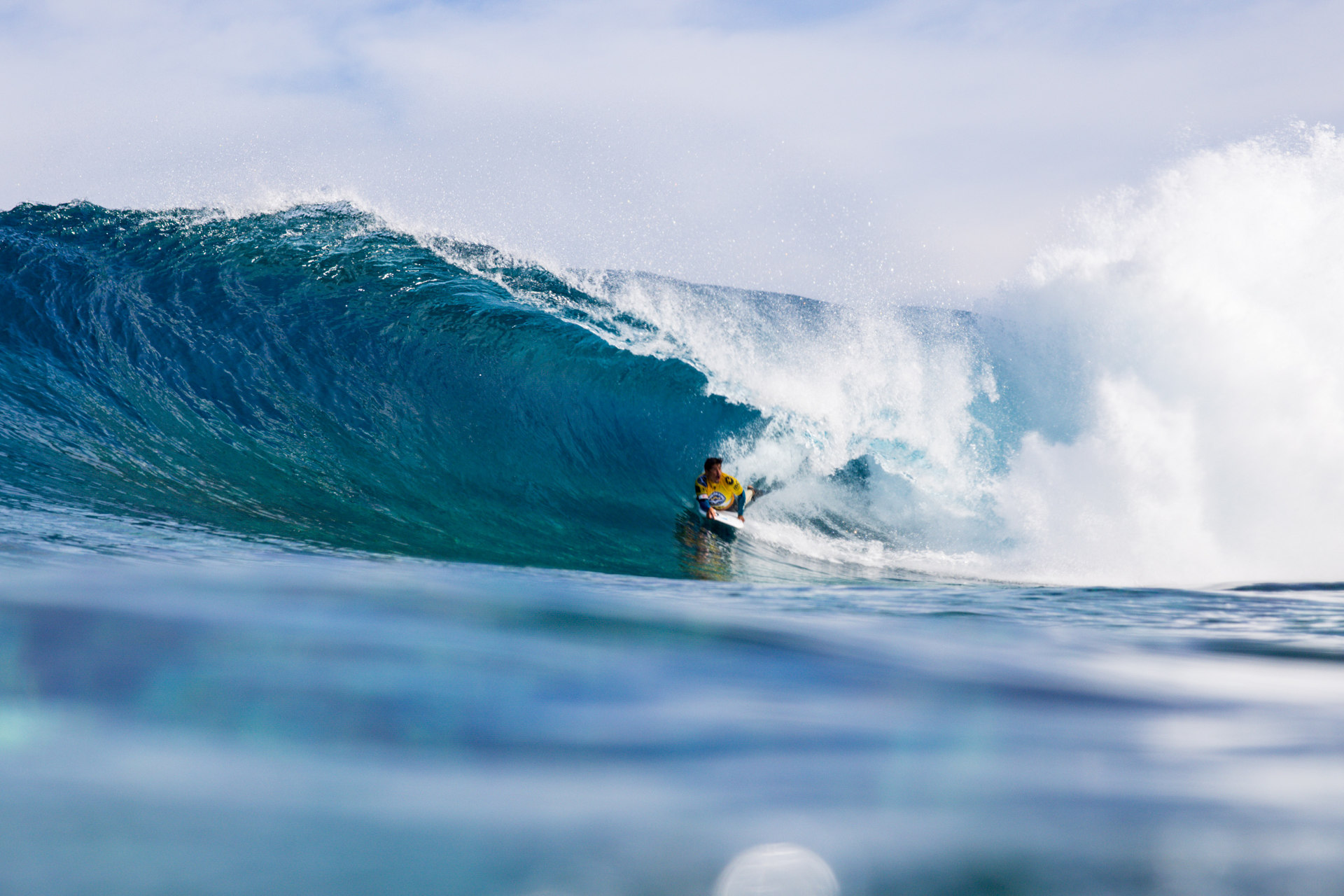 Standout of the day was Chile’s Cristóbal Tobar, who pulled into a deep barrel and followed it up with a clean roll for a 9.5, the highest single-wave score.