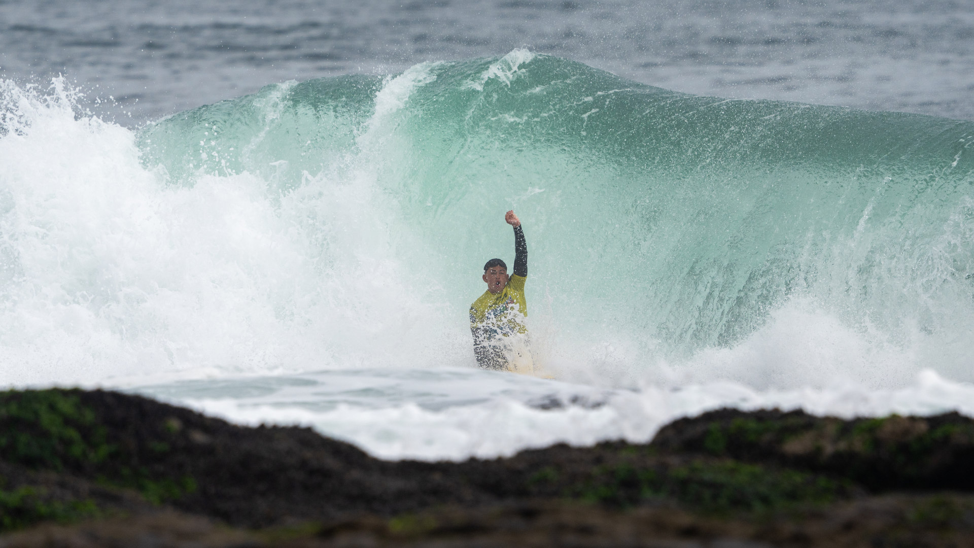 It was a super close and exciting heat right up until the last minute. Gotta give props to these young guys—they were brave and focused, taking risks on a super sharp reef with huge waves.